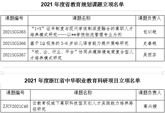我校获三项2021年度省教育规划课题立项和一项浙江省中华职业教育科研项目立项