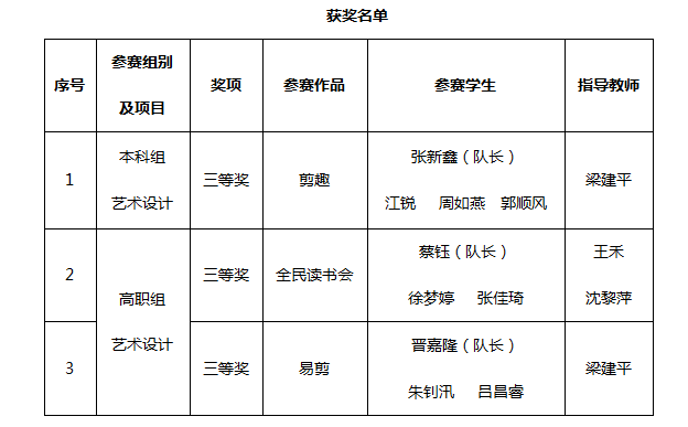2018年全国大学生“互联网+”创新大赛暨第六届“发现杯”全国大学生互联网软件设计大奖赛区域赛,从报名到提交作品,共历时6个月,于4月8日公布竞赛结果,我校计信系1个参赛队伍获得本科组艺术设计三等奖,2个参赛队伍获得高职组艺术设计三等奖。