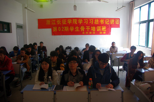 3月25日下午,浙江长征学院学习习总书记讲话第2期学生骨干培训班在1109进行,学院团委老师、“一体两翼”骨干以及各系代表参加了此次学习会。(院团委供稿)