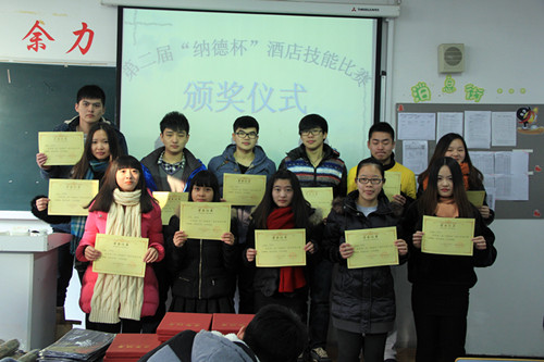 12月17日上午,由纳德酒店股份有限公司冠名赞助的第二届“纳德杯”酒店技能比赛暨2015年浙江省高职高专院校技能大赛“中餐主题宴会设计”赛项选拔赛在实训楼北303中餐厅模拟实训室顺利举办。此次比赛由我院管理系主办,酒店管理教研室承办,比赛奖品由纳德酒店股份有限公司赞助。