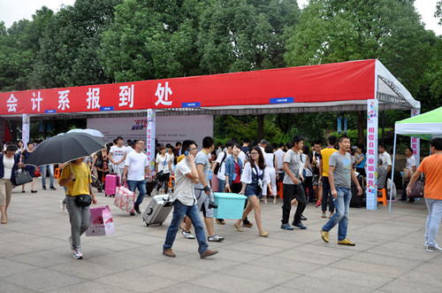 尽管天气时而阴雨,但各系师生迎新热情丝毫不减。在新生报到现场,各部门精心组织,密切配合,统筹协调,各司其职,报到接待工作有条不紊展开。为方便新生顺利办理入学手续,各系均采取了一对一迎接的一站式服务举措。从入学手续办理到住宿登记、领取生活用品,直至新生入驻宿舍,迎新志愿者都全程陪同协助,热情温馨的服务让许多新生和家长倍感亲切。与往年一样,为帮助家庭暂时有困难的学生顺利入学,学生处专门开设了“绿色通道”。为保证新生和家长的往返交通,学院后勤安排了前往火车站和汽车站的迎新车辆。为避免出现交通拥堵,保卫处全员出动,努力做好校园交通疏导及车辆停放工作。