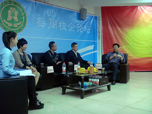 接着,学院副院长杜宝山教授认为校企合作应该让学校走出去,企业走进来。紧接着家长及实习生代表谈论对校企合作的看法。