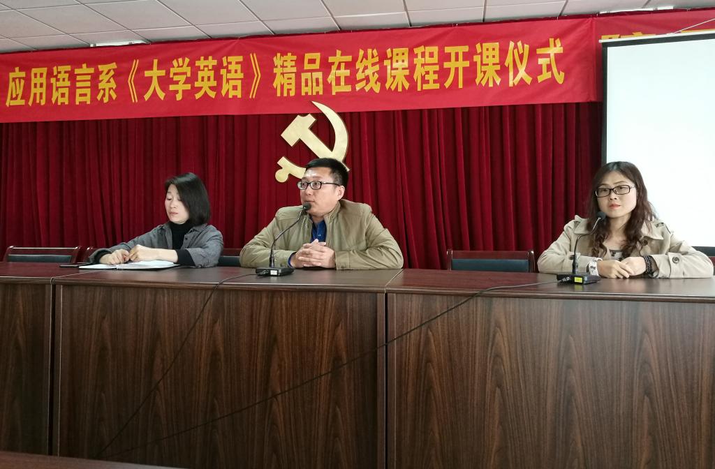 11月8日下午,应用语言系在行政楼第三会议室举办《大学英语》精品在线课程开课仪式。系主任杨成青教授、党总支书记郑雪春、公共外语教研室全体教师及学生代表参加了仪式。