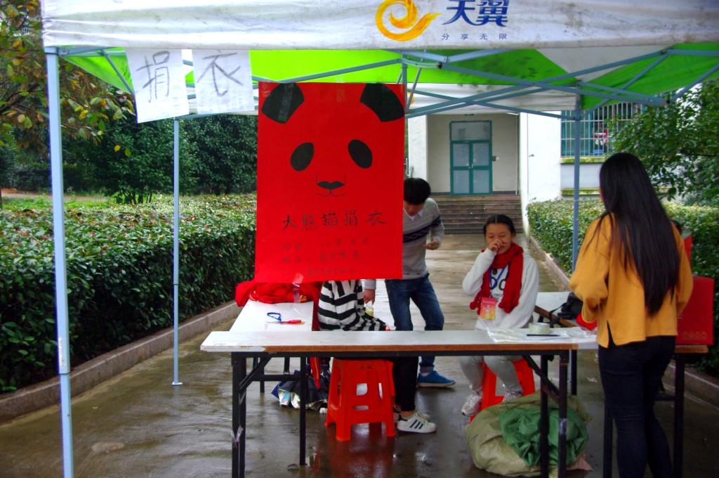 11月18日下午13时,我院社联在图书馆前广场开展了社团月公益周活动。此次活动包括“大熊猫捐衣”和为会计系病重学姐捐款两个活动。