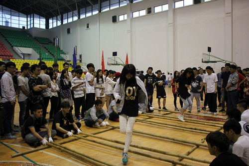 为提高学生的积极性,活动共分为两个部分:排词语和跳竹竿舞。排词语活动现场排有12张打乱的价值观名牌,参赛队员需从起点跑到终点翻看名牌,每次只能翻一张牌,且最后要实现24字核心价值观的正确排序。跳竹竿舞由各系20名队员参赛,两两同时上场,先喊出24字核心价值观口号,再开始跳竹竿舞。两项活动考验了同学们的记忆力、默契程度及反应能力。比赛在轻松愉悦的气氛中进行。最终,经过激烈争夺,管理系和会计系并列第一。