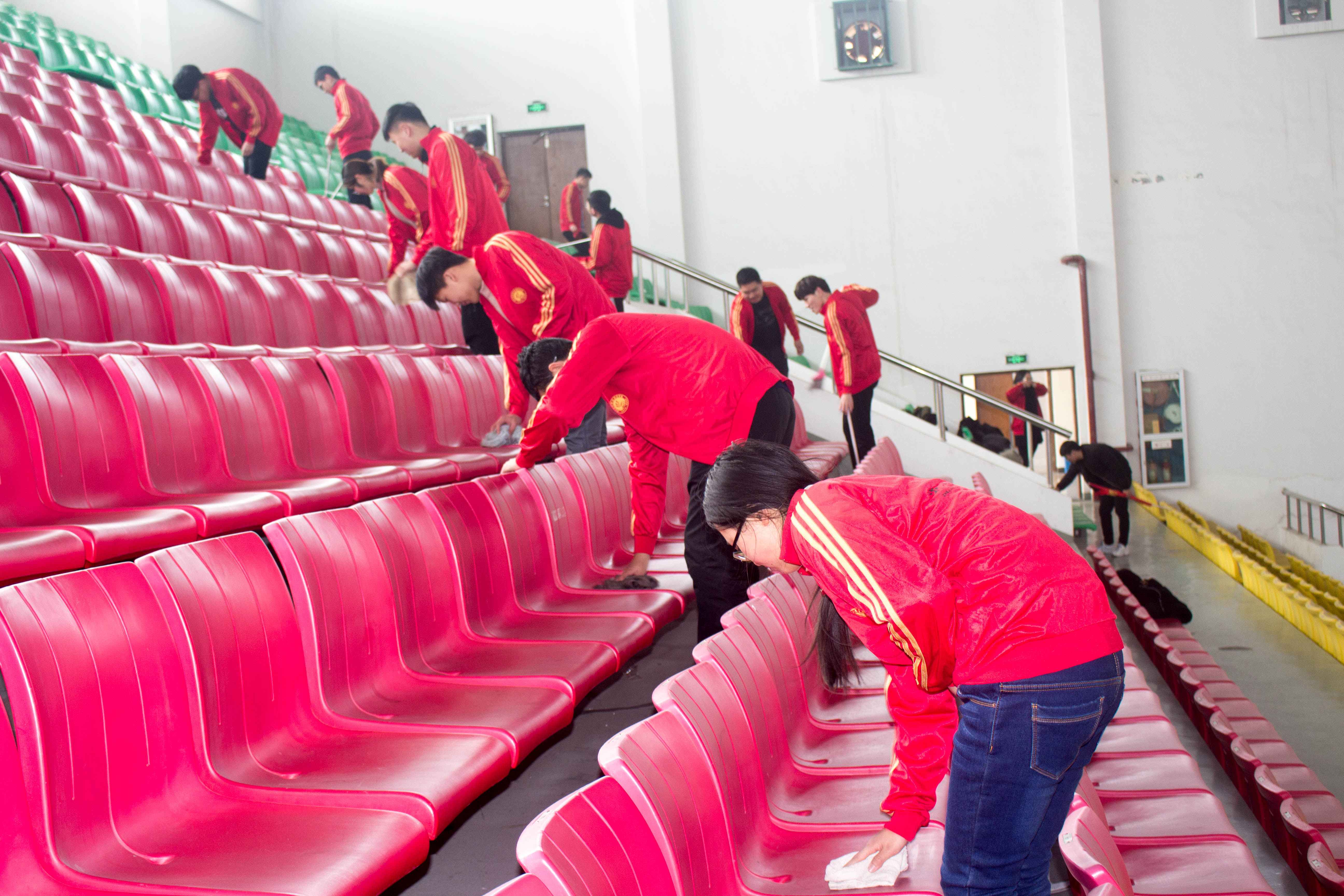 学雷锋志愿服务队分为两组,一组为学校体育馆及活动室打扫卫生、整理物资,清扫看台区域卫生、擦拭椅子等;另一组积极为学校周围公交站、公共自行车点清理垃圾,去除“牛皮癣”小广告,同时将摆放散乱的共享单车排列整齐。志愿者热情认真的工作身影成为了校内外一道亮丽的风景线。