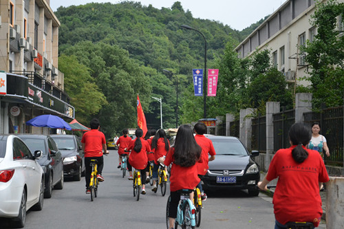 2017年6月25日—26日期间,我院“美丽浙江”实践团在留下街道开展了骑行宣传活动。